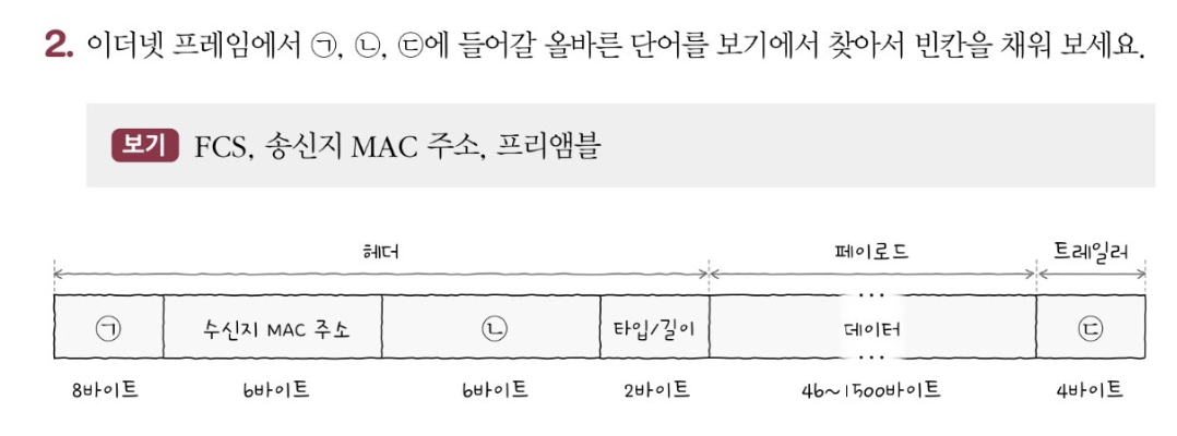 답: ㄱ-프리앰블, ㄴ-송신지 MAC 주소, ㄷ-FCS