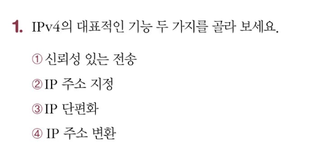 IPv4의 대표적인 기능은 다음과 같다.
