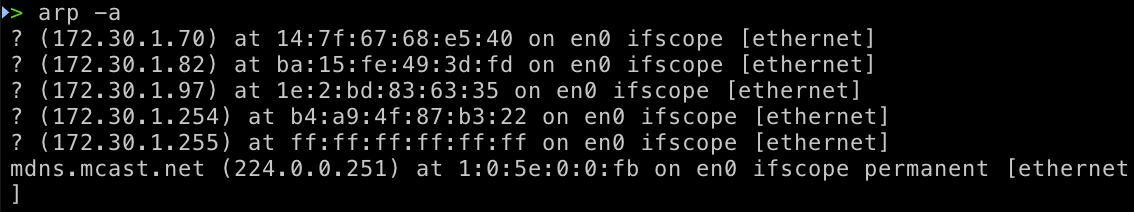 -> 명령 프롬포트에서 arp -a를 입력하여 확인할 수 있다.