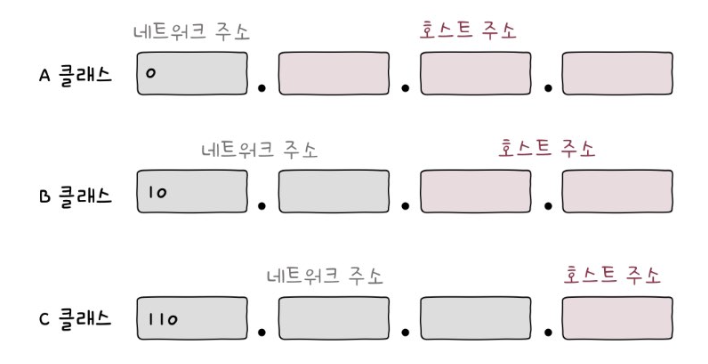 네트워크 크기에 따라 IP 주소를 분류하는 기준인 클래스에 따라 아래와 같이 나눌 수 있다.