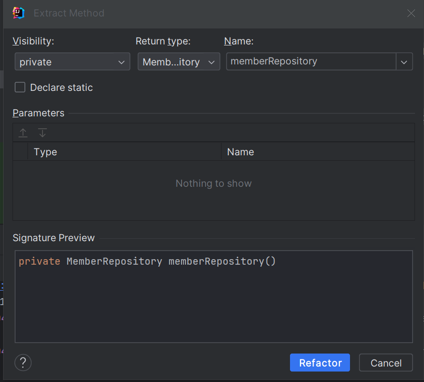 cf) 중복 제거 리팩토링 : Ctrl+Alt+M 키