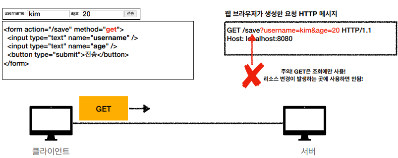 - 하지만 GET은 조회에서만 사용해야 한다. 리소스 변경이 발생하는 곳에서 사용하면 안된다!