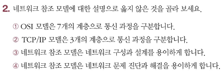 풀이 : TCP/IP 모델은 4개의 계층으로 구분한다.