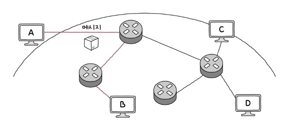 - 정해진 경로만으로 메시지를 송수신하지 않는다. (회선 교환 방식과의 차이점)