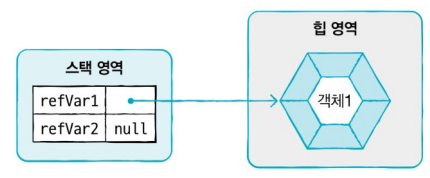 - 참조 타입 변수는 스택 영역에 힙 영역의 객체 주소를 가진다.