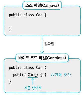 생성자는 메소드와 모양이 비슷하지만, 리턴 타입이 없고 클래스 이름과 동일하다. 생성자 블록 내부에는 필드에 초기값을 저장하거나 메소드를 호출하여 객체 사용 전에 필요한 준비를 한다. 이때 매개 변수는 new 연산자로 생성자를 호출할 때 외부의 값을 생성자 블록 내부로 전달하며 생략 가능하다.